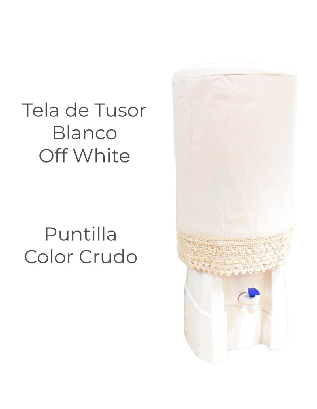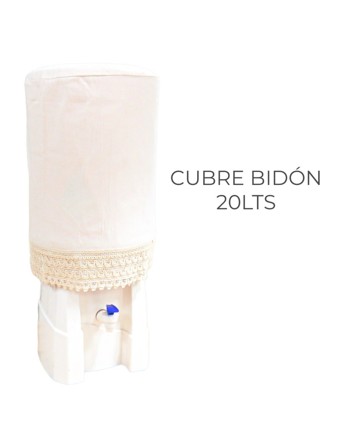 Funda cubre bidón con puntilla decorativa.