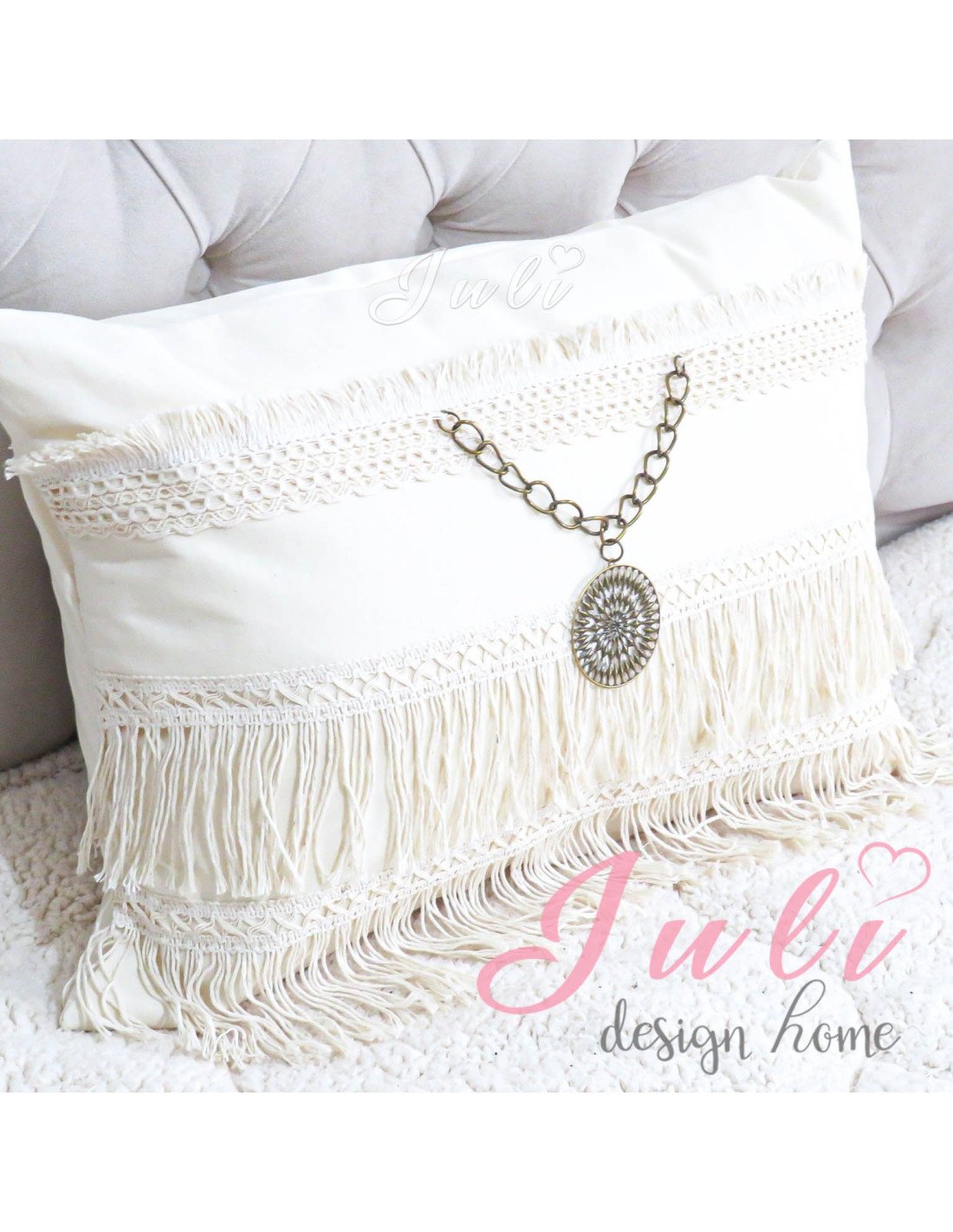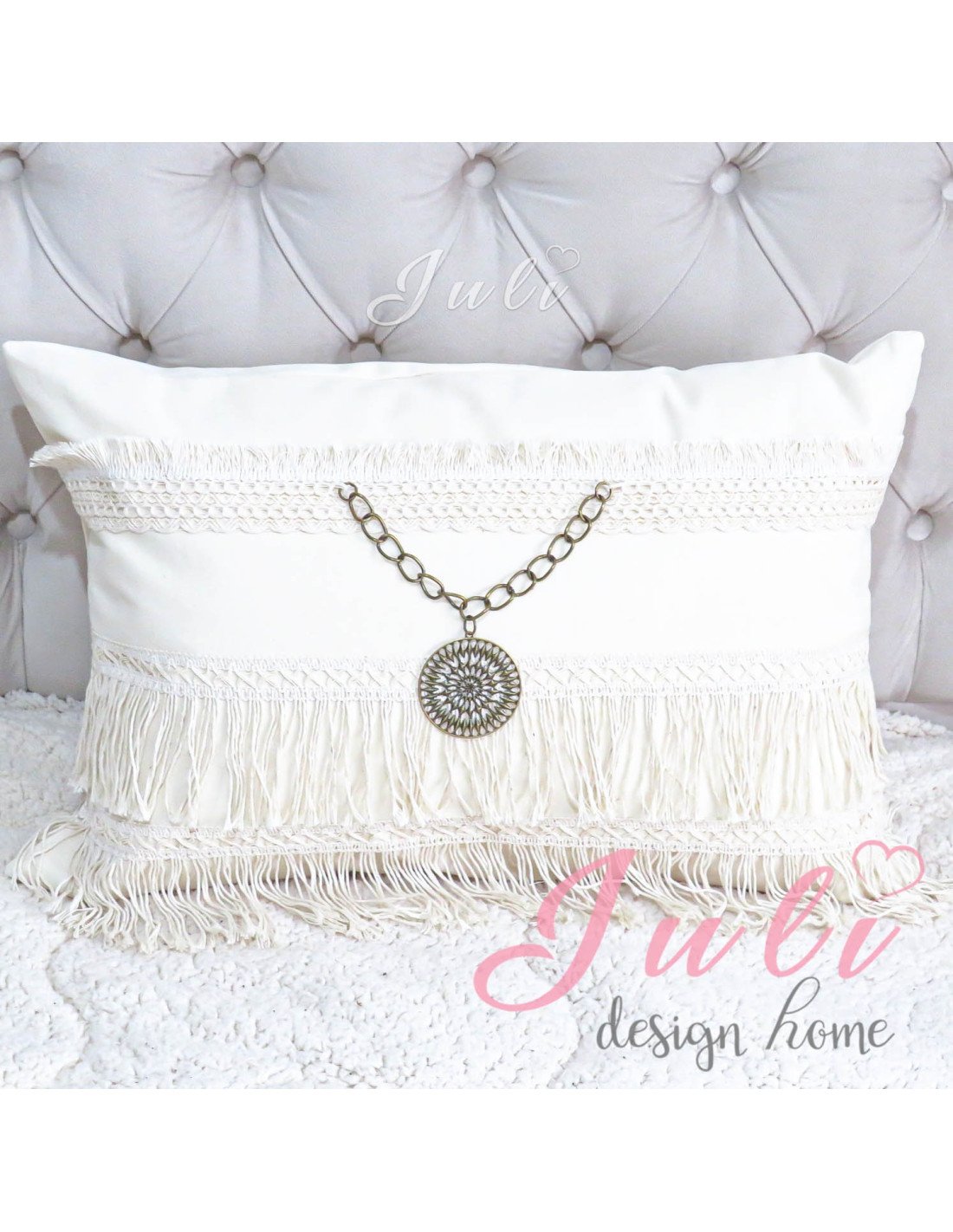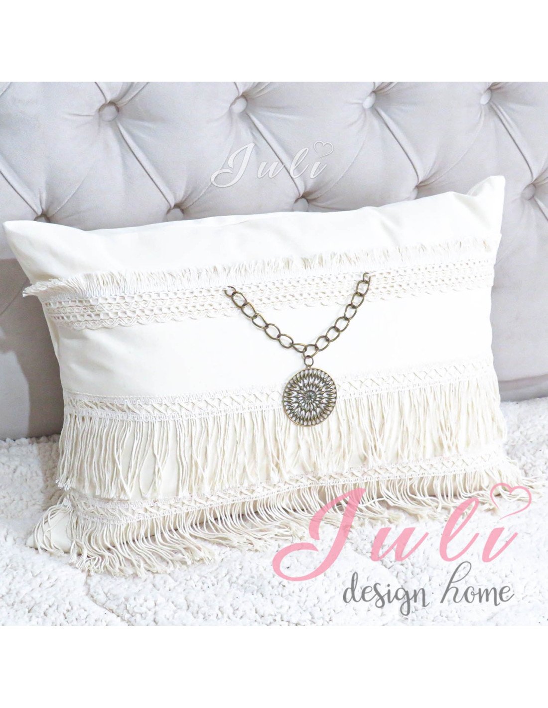 Este set contiene 4 almohadones Boho Luna con lentejuelas plateadas.