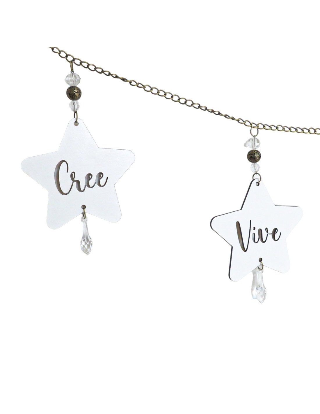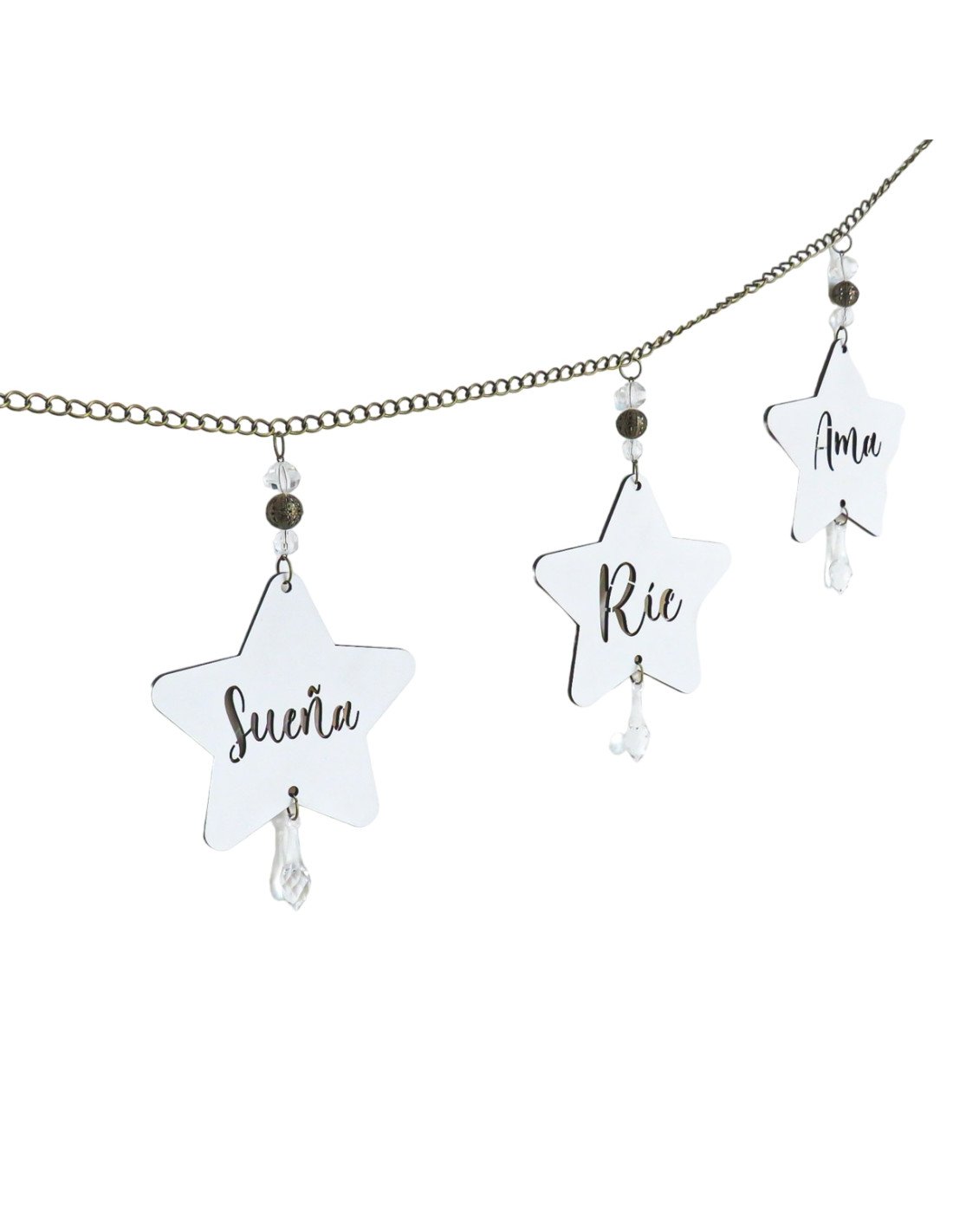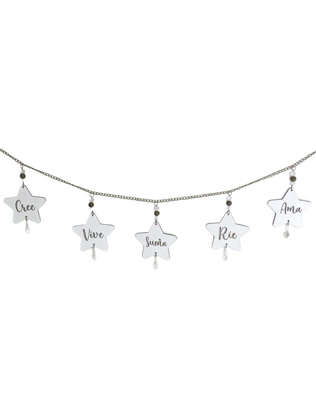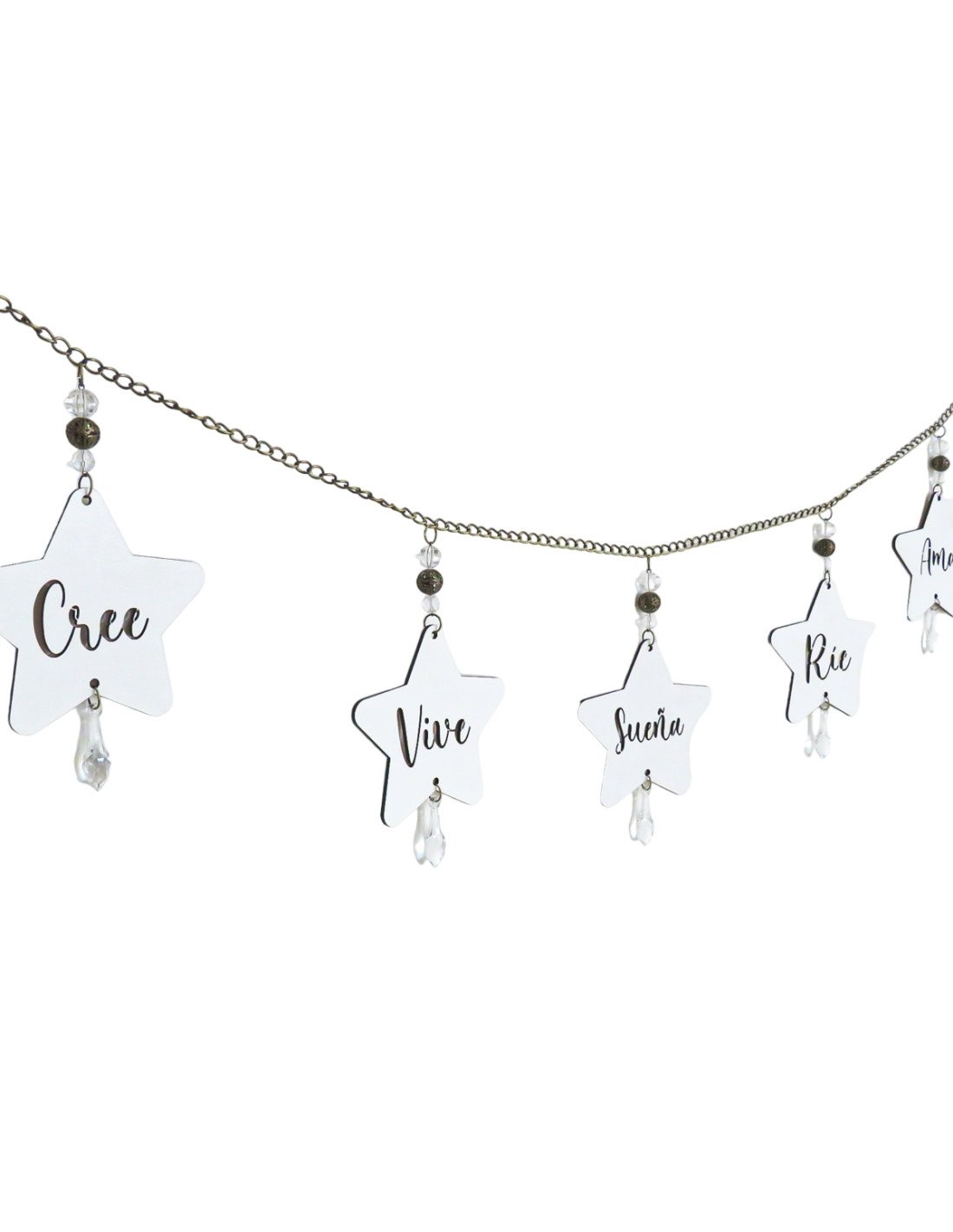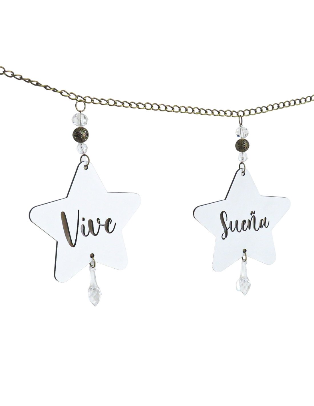 Diseñado con cadenas, caireles y borlas.
