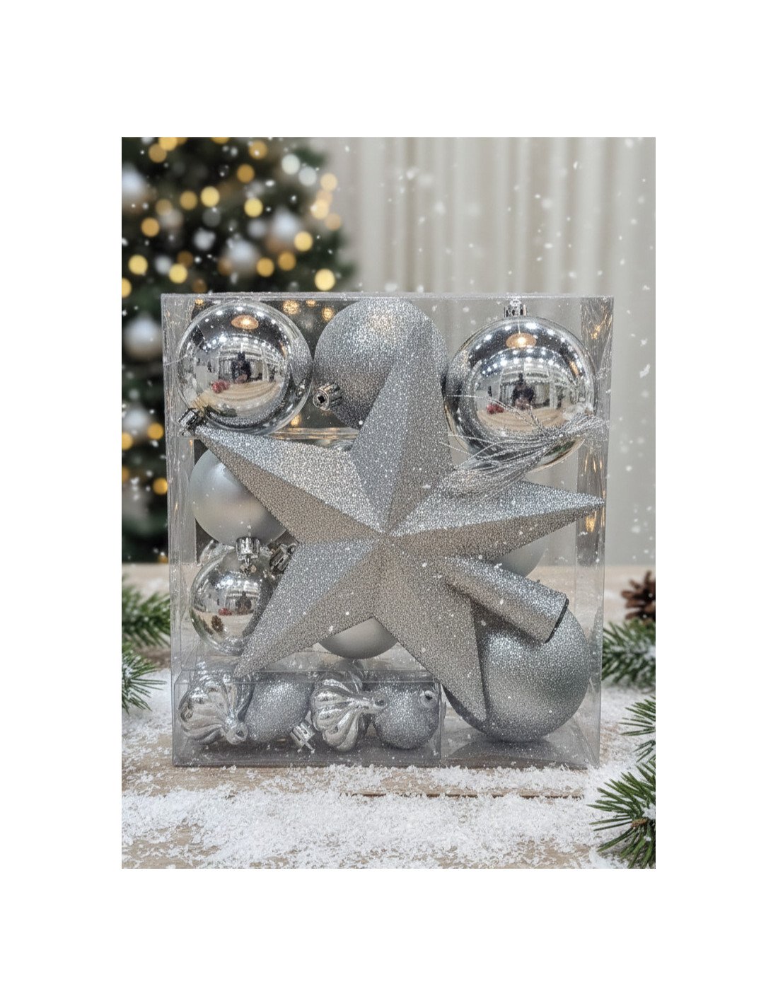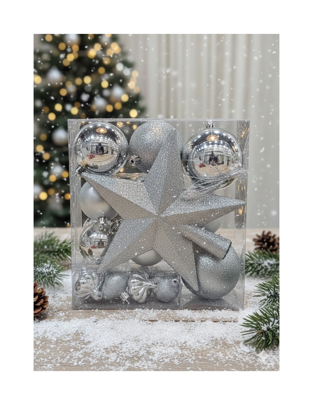 Set Adornos Navidad Plateado (18 piezas) - Juli Design Home