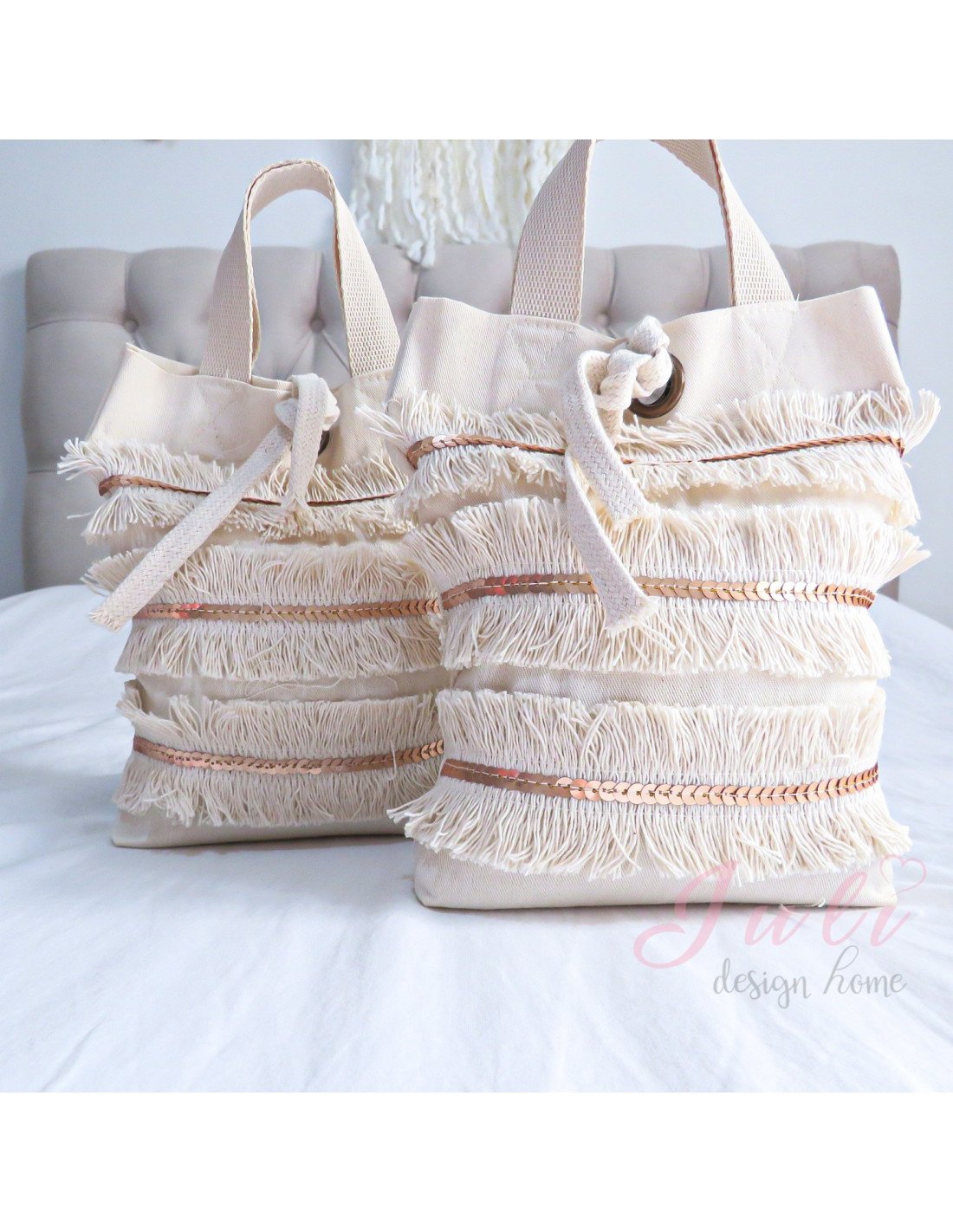 Fabricado en tela de gabardina color natural, el tope para puertas "Abby" tiene un aspecto clásico y atemporal que se adapta fácilmente a cualquier estilo de decoración. Lo que lo hace especial son los detalles de flecos y lentejuelas color cobre que le confieren un aspecto sofisticado y elegante, agregando un toque de brillo y glamour a tus puertas.