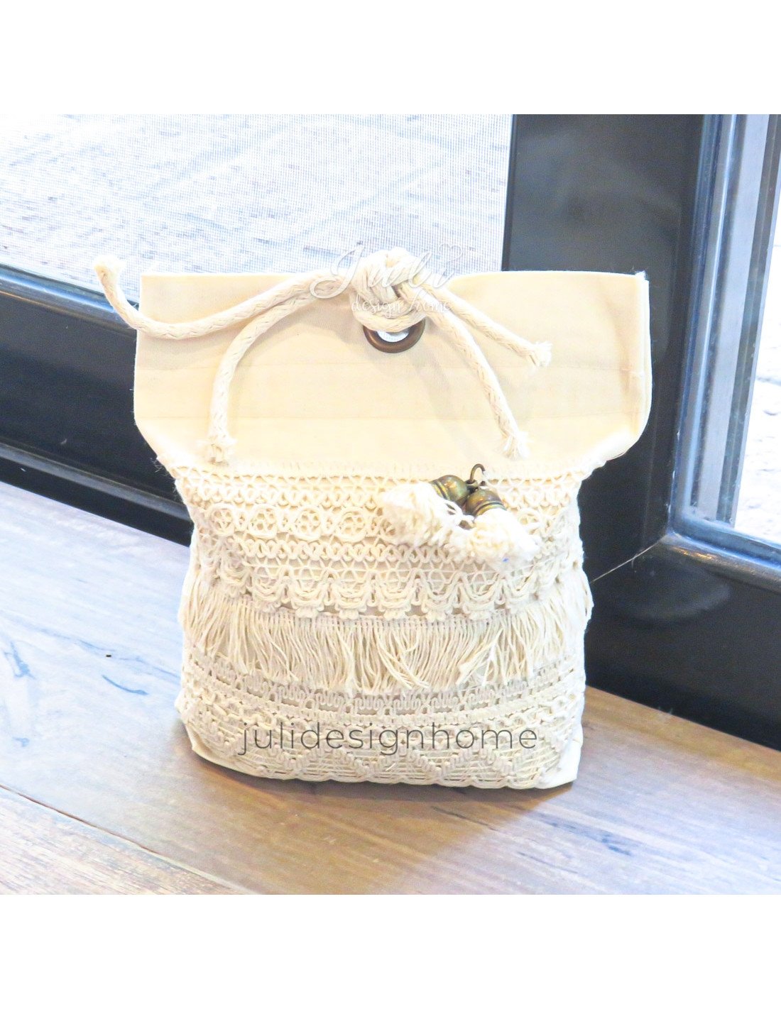 Fabricado en tela de gabardina color natural, el tope para puertas "Adira" tiene un aspecto clásico y versátil que se adapta fácilmente a diferentes estilos de decoración. Sus puntillas y cadenas con caireles de decoración le añaden un toque romántico y encantador, brindando un detalle único y atractivo.