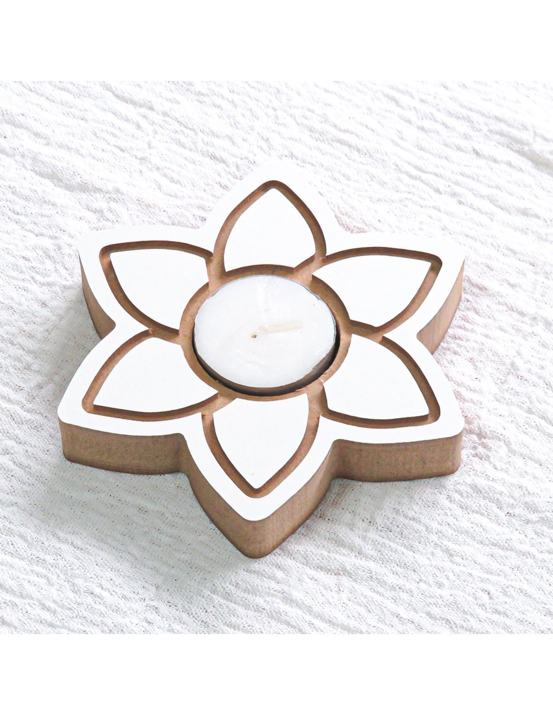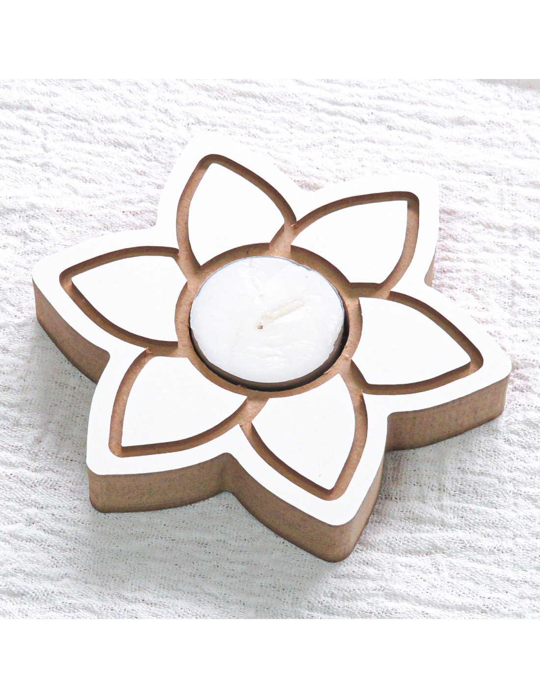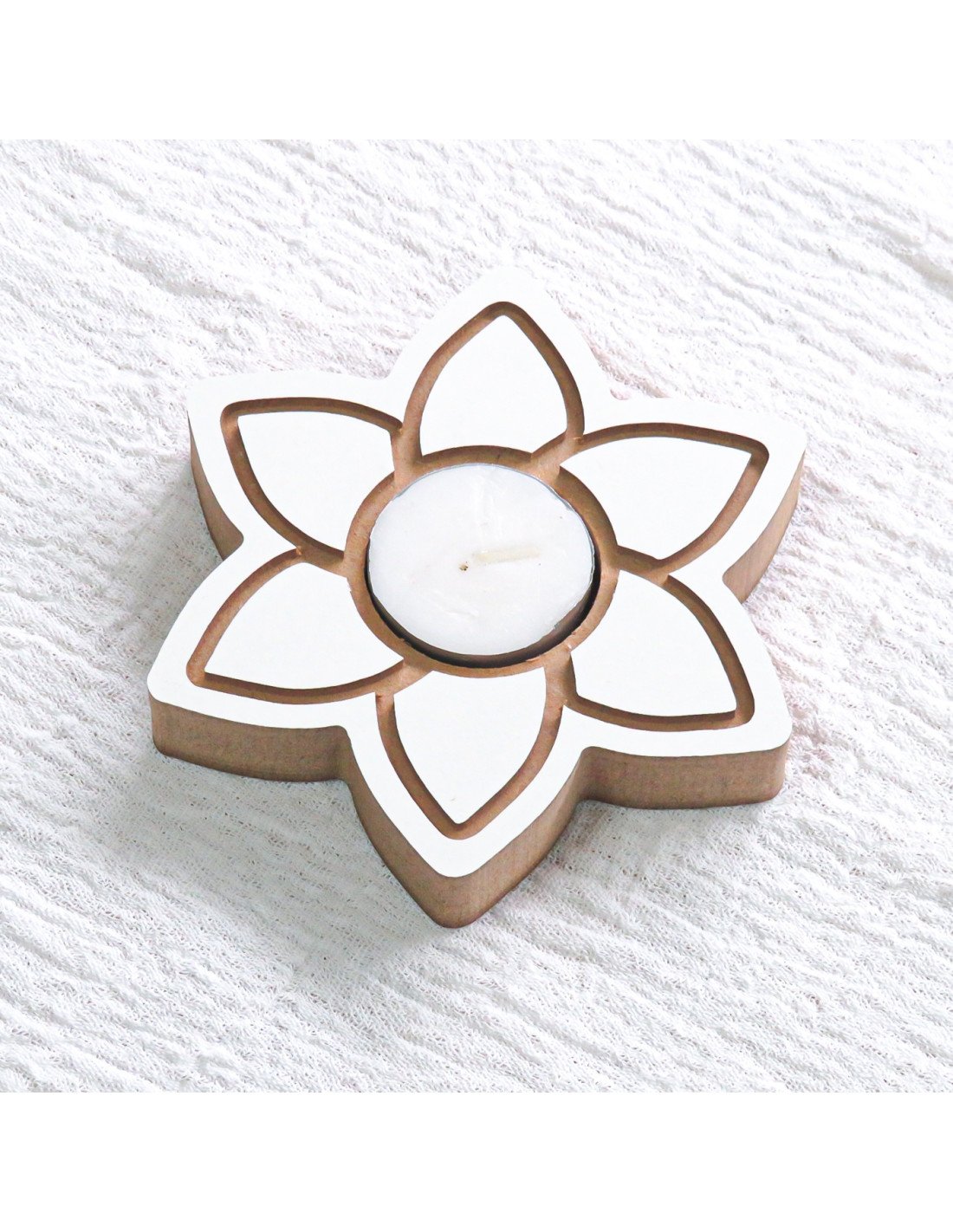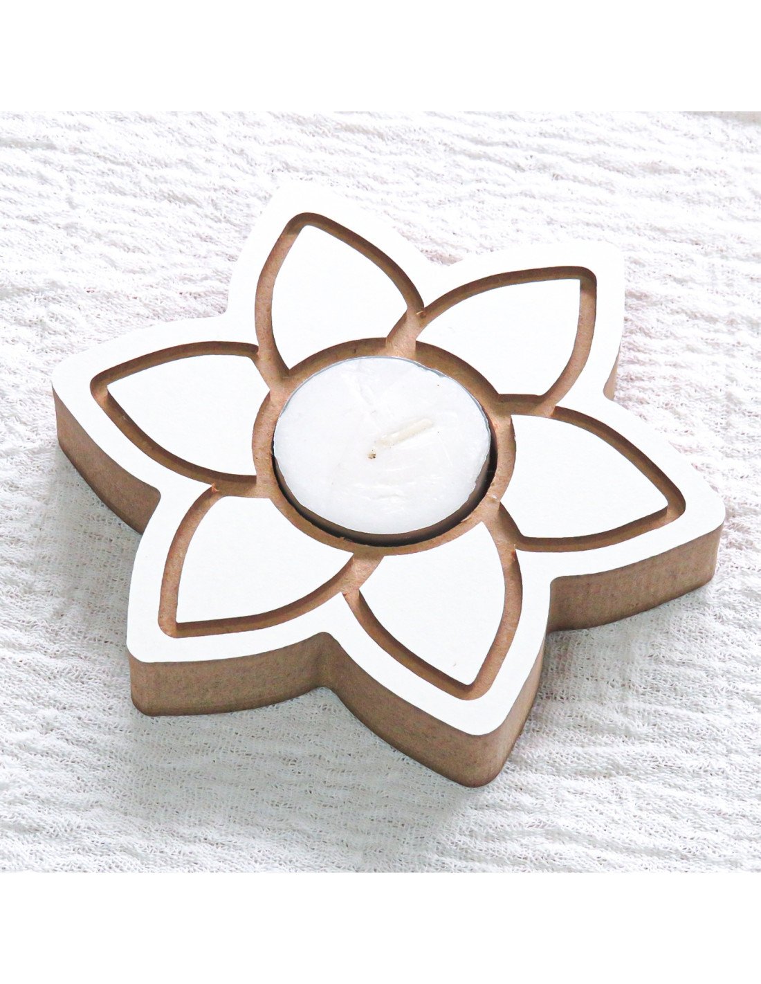 Vela de madera con forma de corazón color blanco.